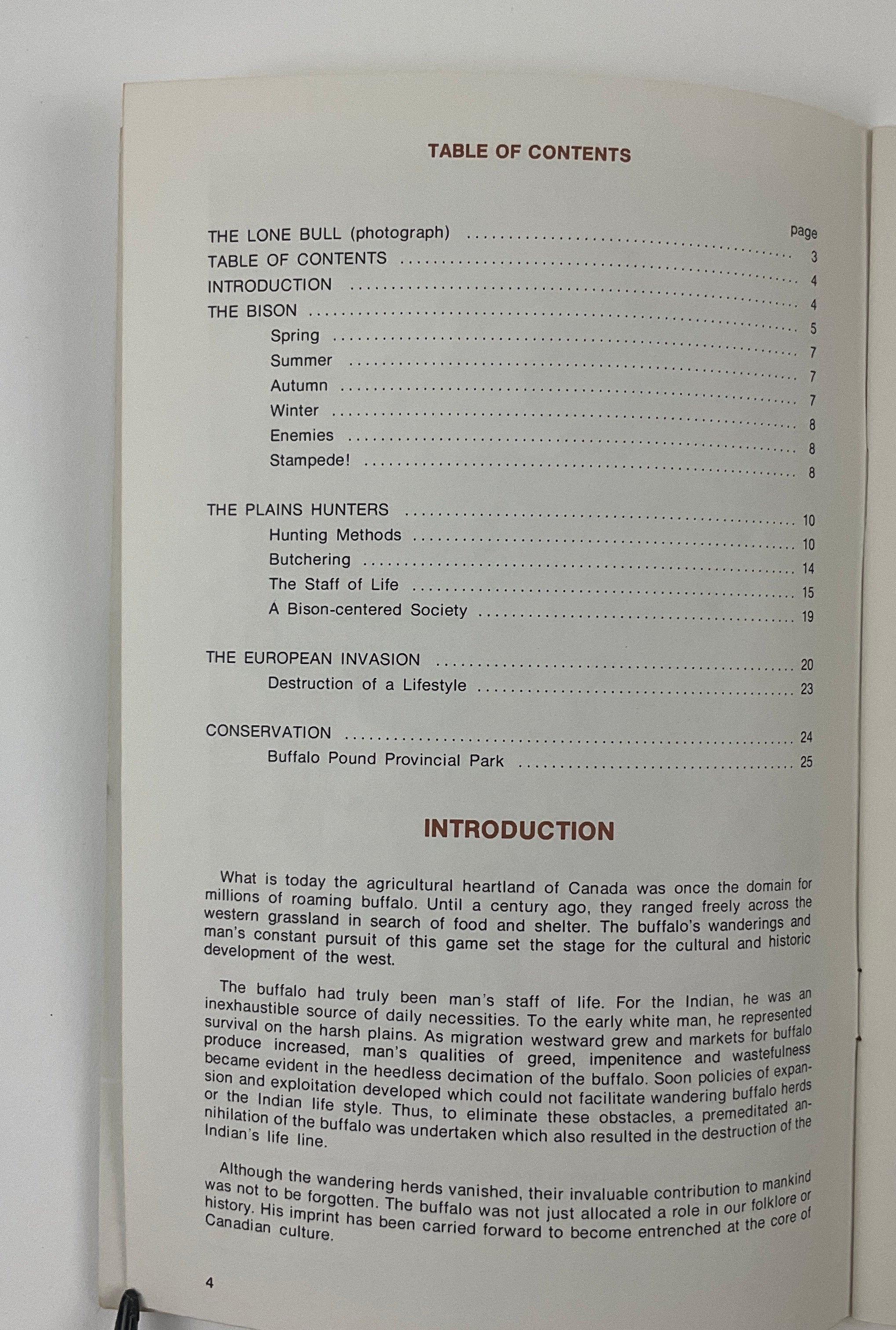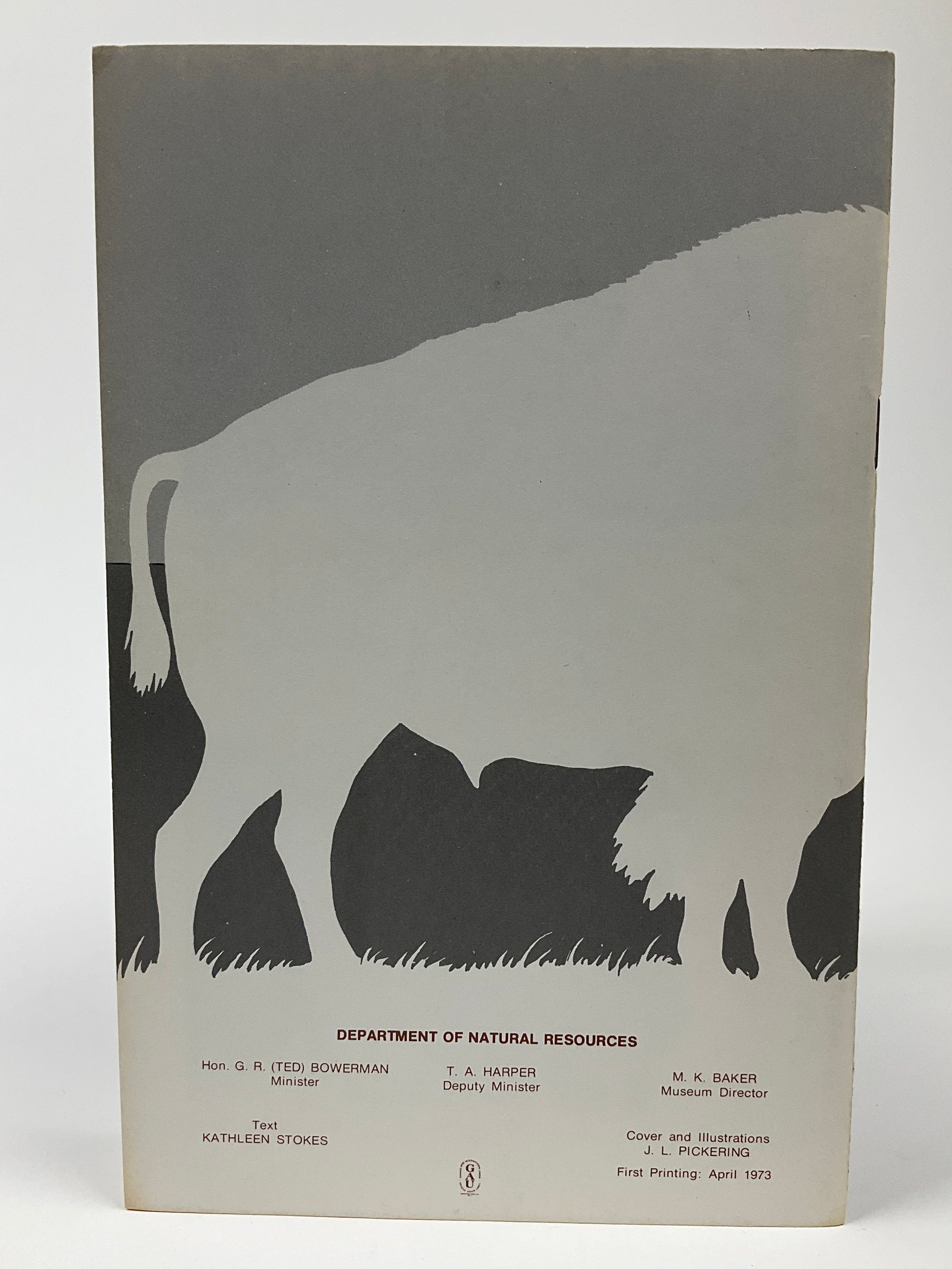 Saskatchewan Museum of Natural History Popular Series No. 16. This volume offers an overview of the relationship between bison, First Nations groups, and white homesteaders on the Canadian prairies. The booklet opens with a season-by-season description of the bison’s habits, habitats, and predators. Author Kathleen Stokes then turns to bison’s centrality to Indigenous prairie societies, explaining the animal’s hunting and use. Finally, Stokes traces the decline of the bison as homesteaders arrived in western Canada. The booklet concludes with a short section on conservation efforts, including the arrival of bison at Elk Island National Park (near Edmonton, Alberta).