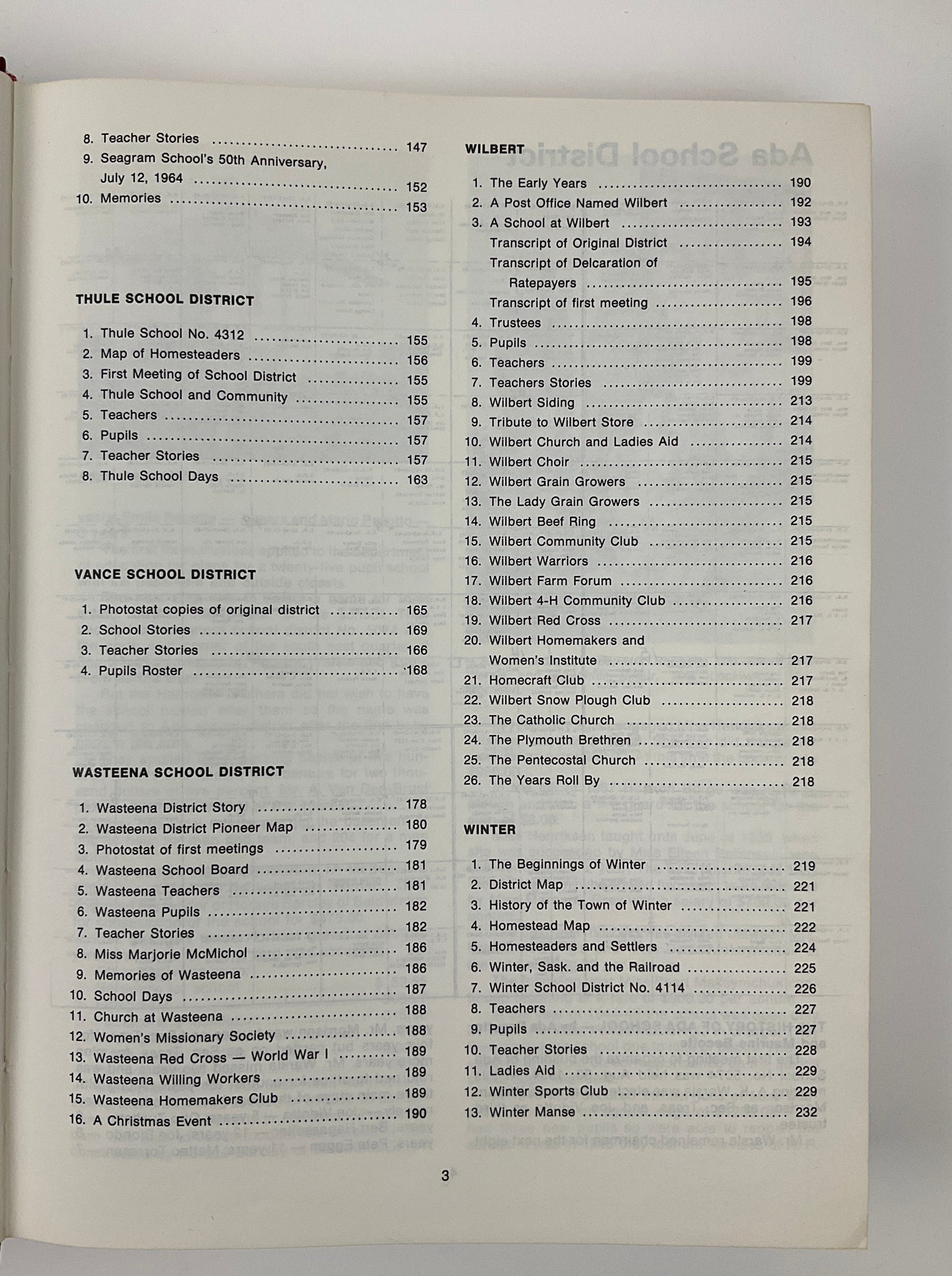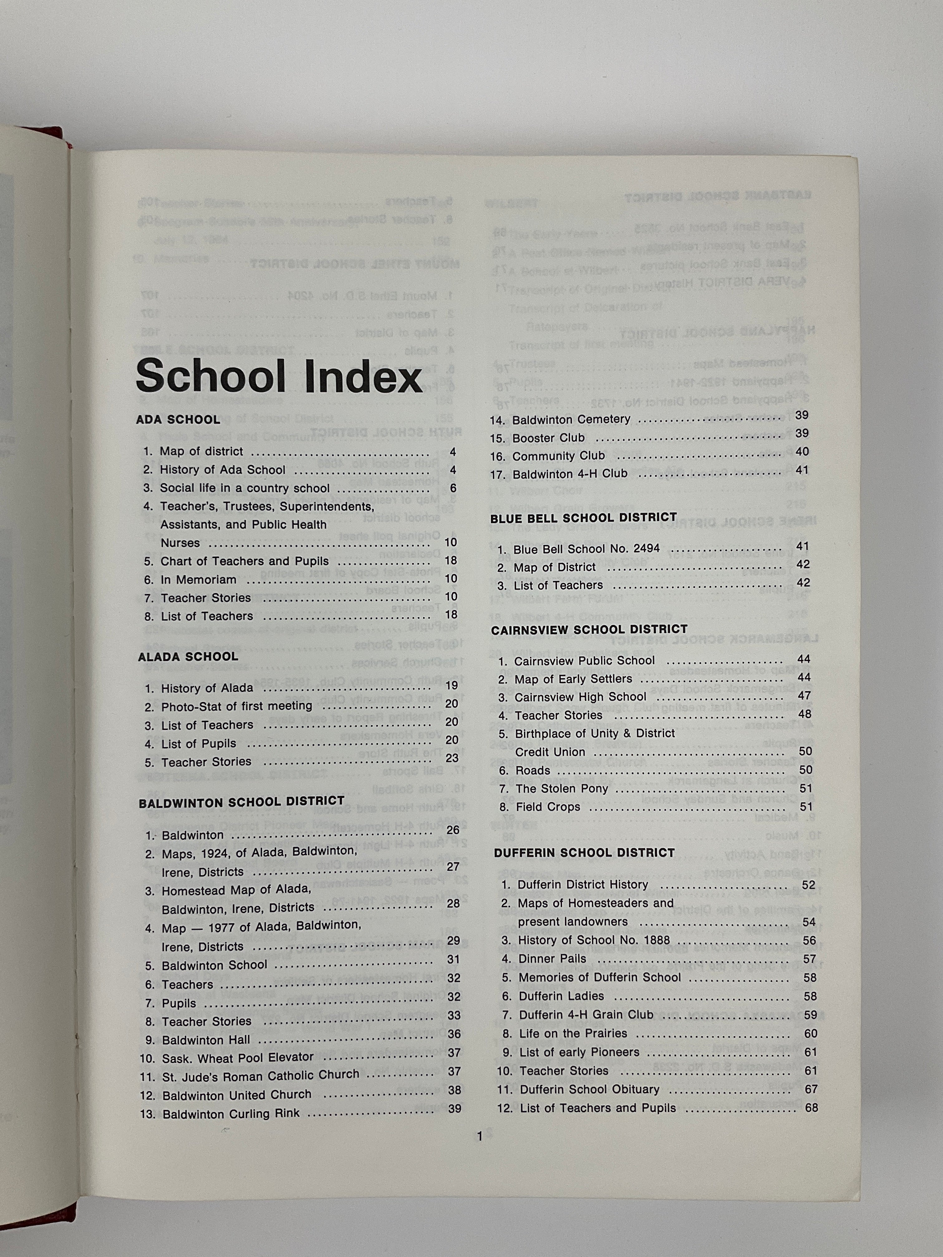 The Blended History Community History Book contains the history of school districts, schools and small settlements, in the Central Saskatchewan region - near the town of Unity. Includes Ada S.D., Ada School, Baldwintion S.D., Bluebell S.D., Cairnsview School, Dufferin School, East Bank District, Happyland, Irene School, Langemarck School, Madawaska S.D., Mount Ethel S.D., Ruth School, Seagram, Thule, Wasteena S.D., Wilbert, Winter, Vance and Freemont. The of the majority of the content is family contributed history.
