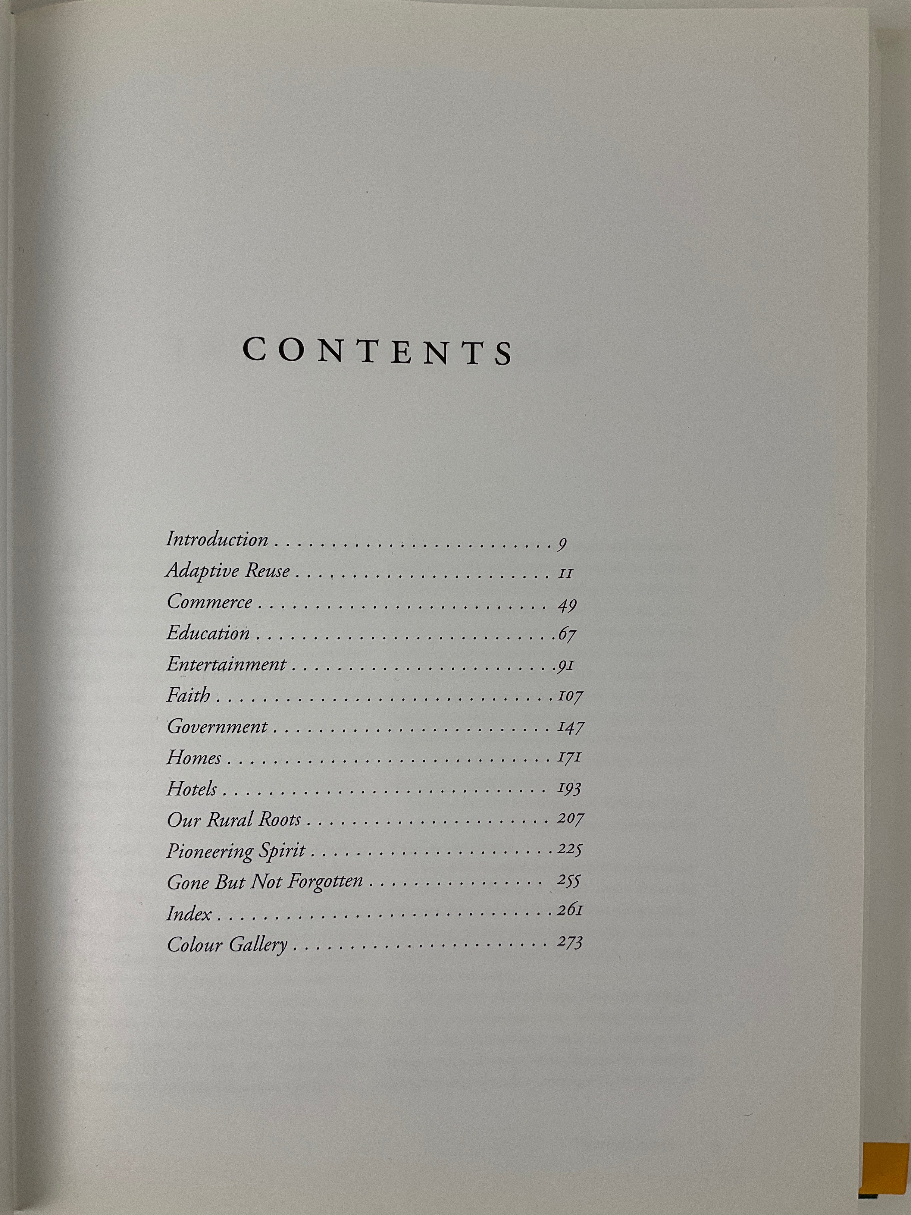 Profiles one hundred structures scattered throughout the province - banks, educational institutions, entertainment venues, government buildings, private dwellings, commercial lodgings and agriculture structures.