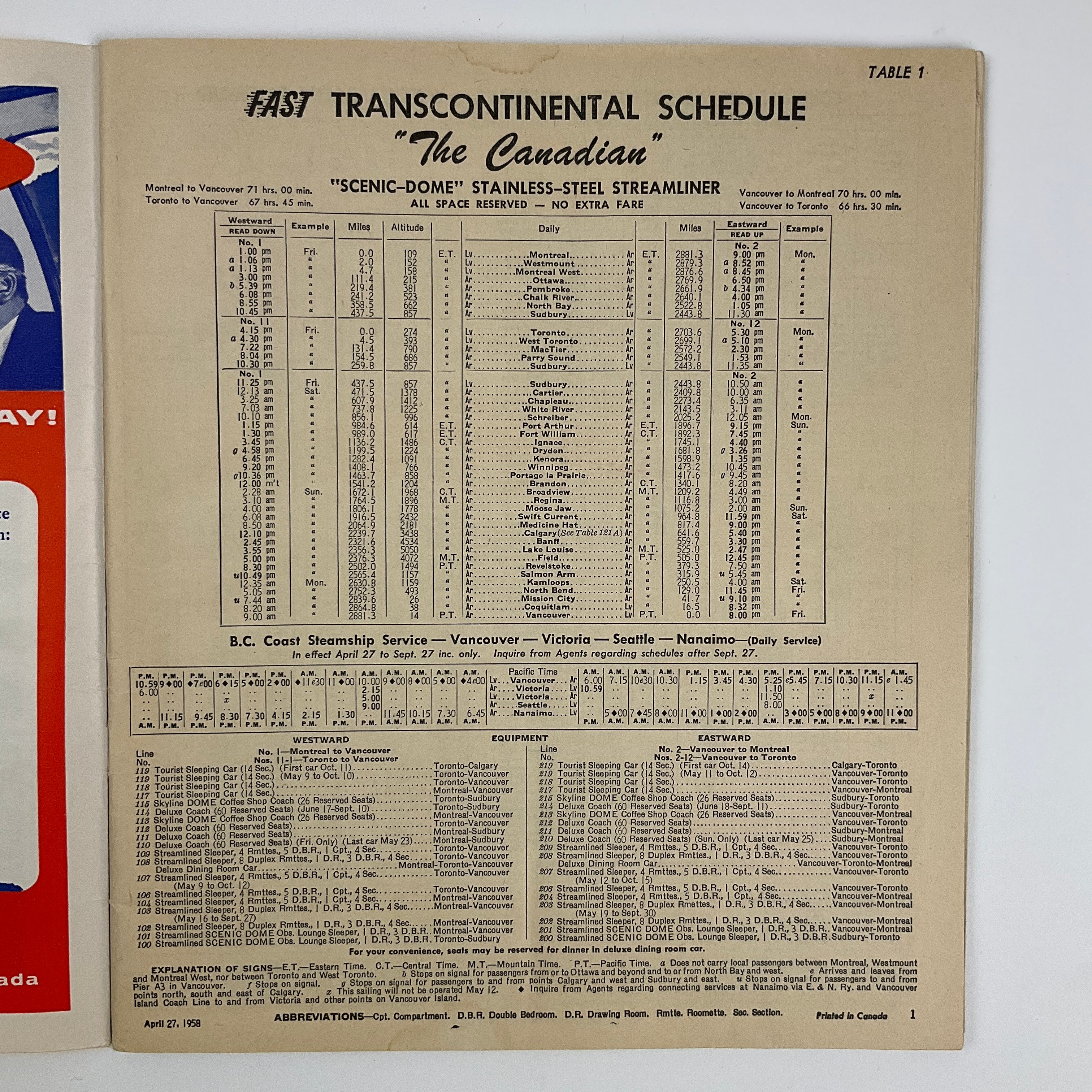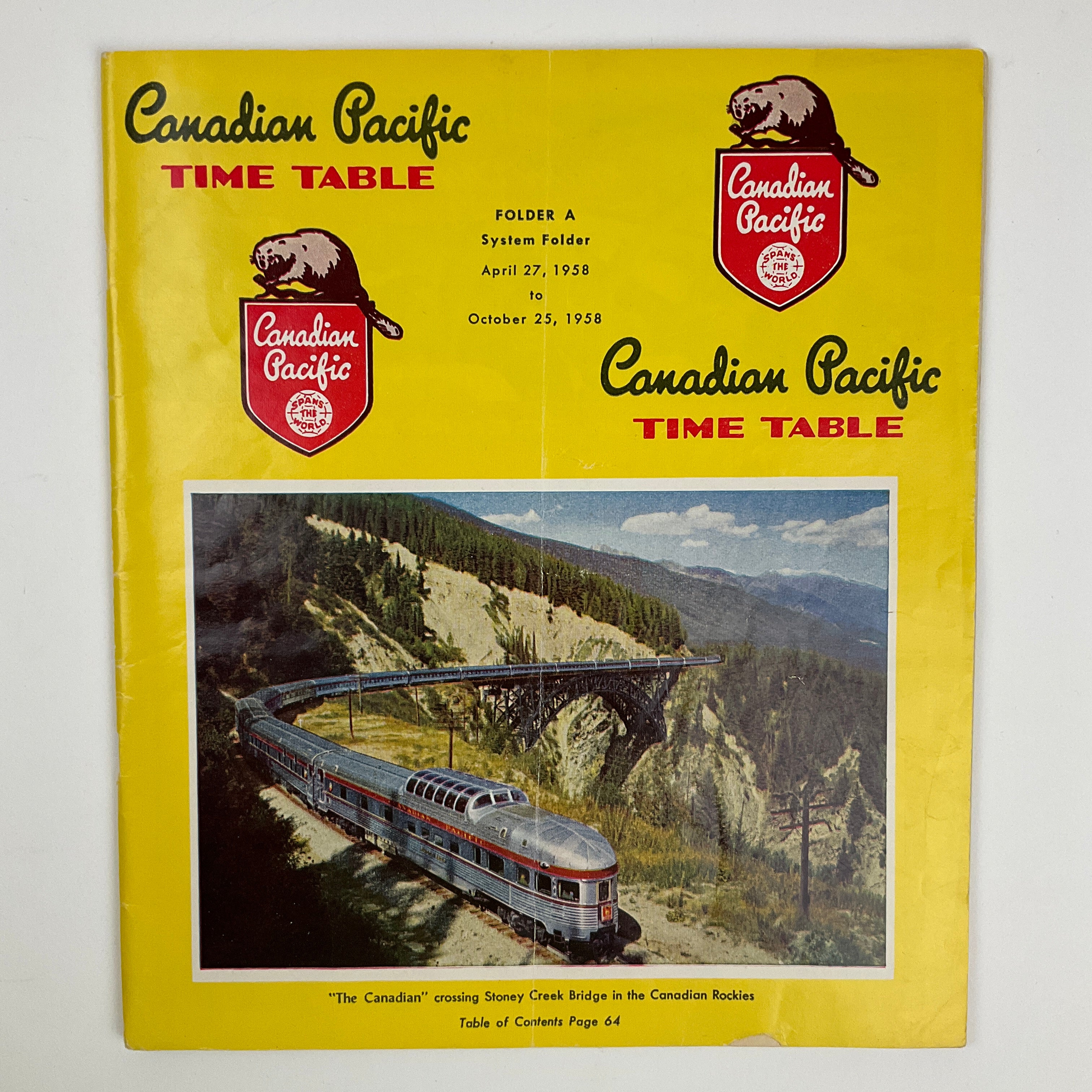 Folder A April 27, 1958 to October 25, 1958. Arrivals and departures for the complete CPR system - Coast to Coast.