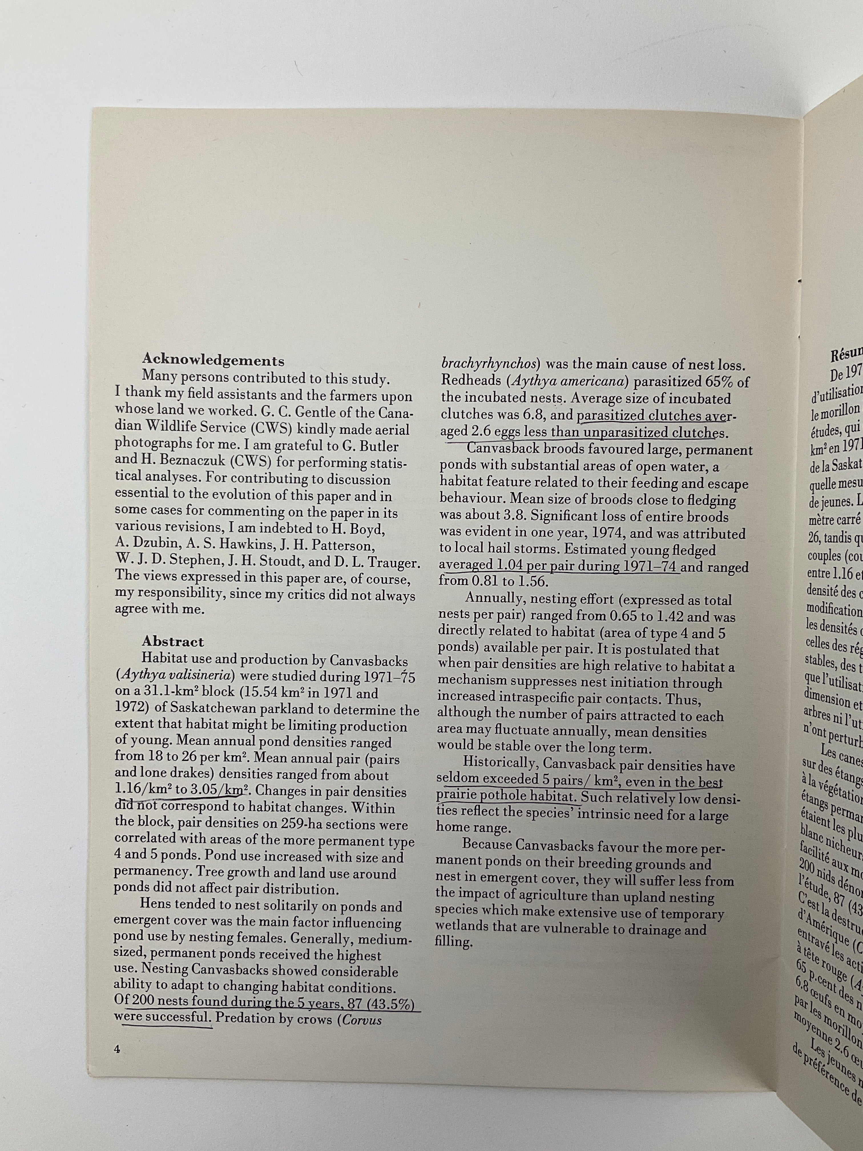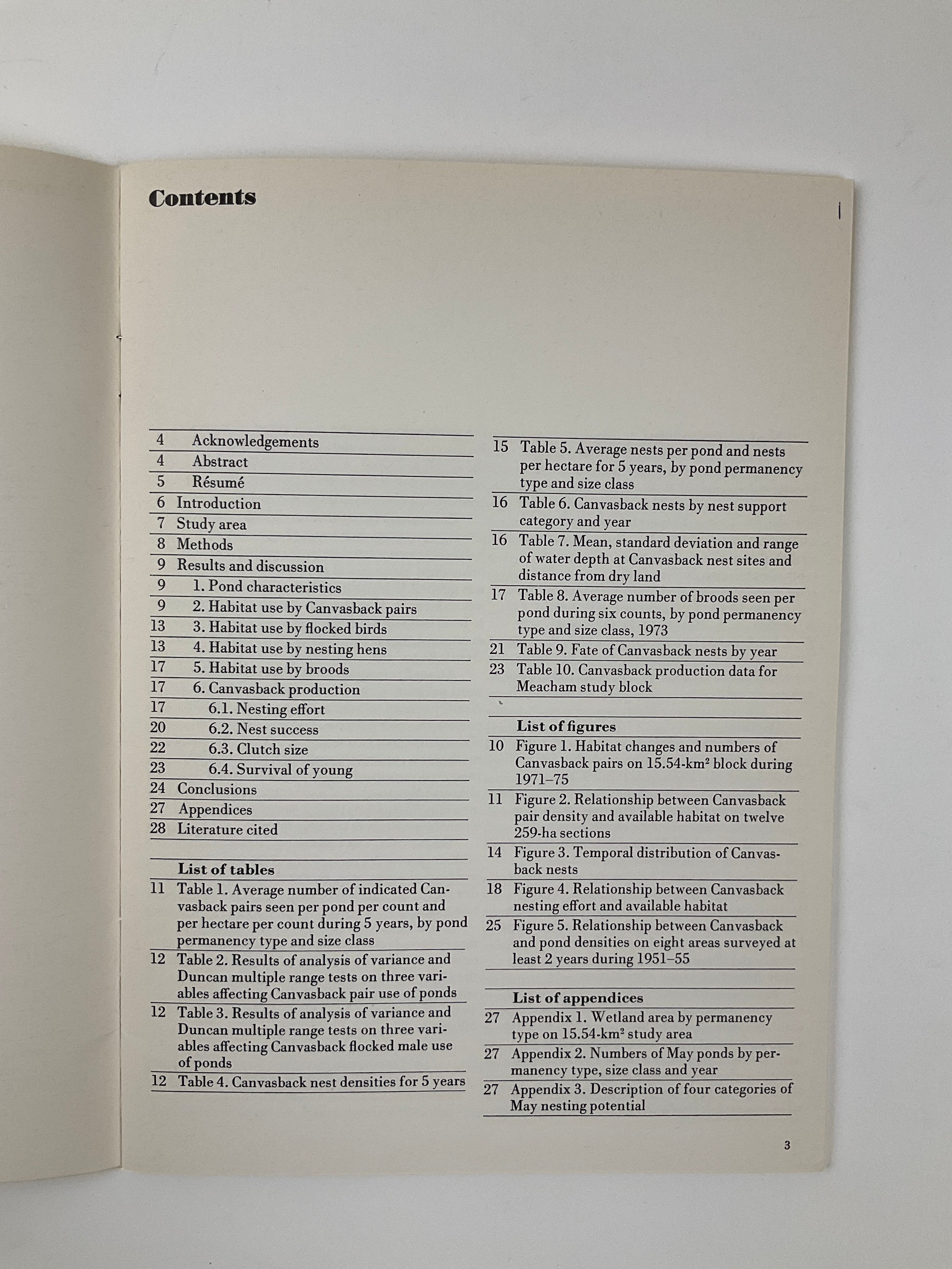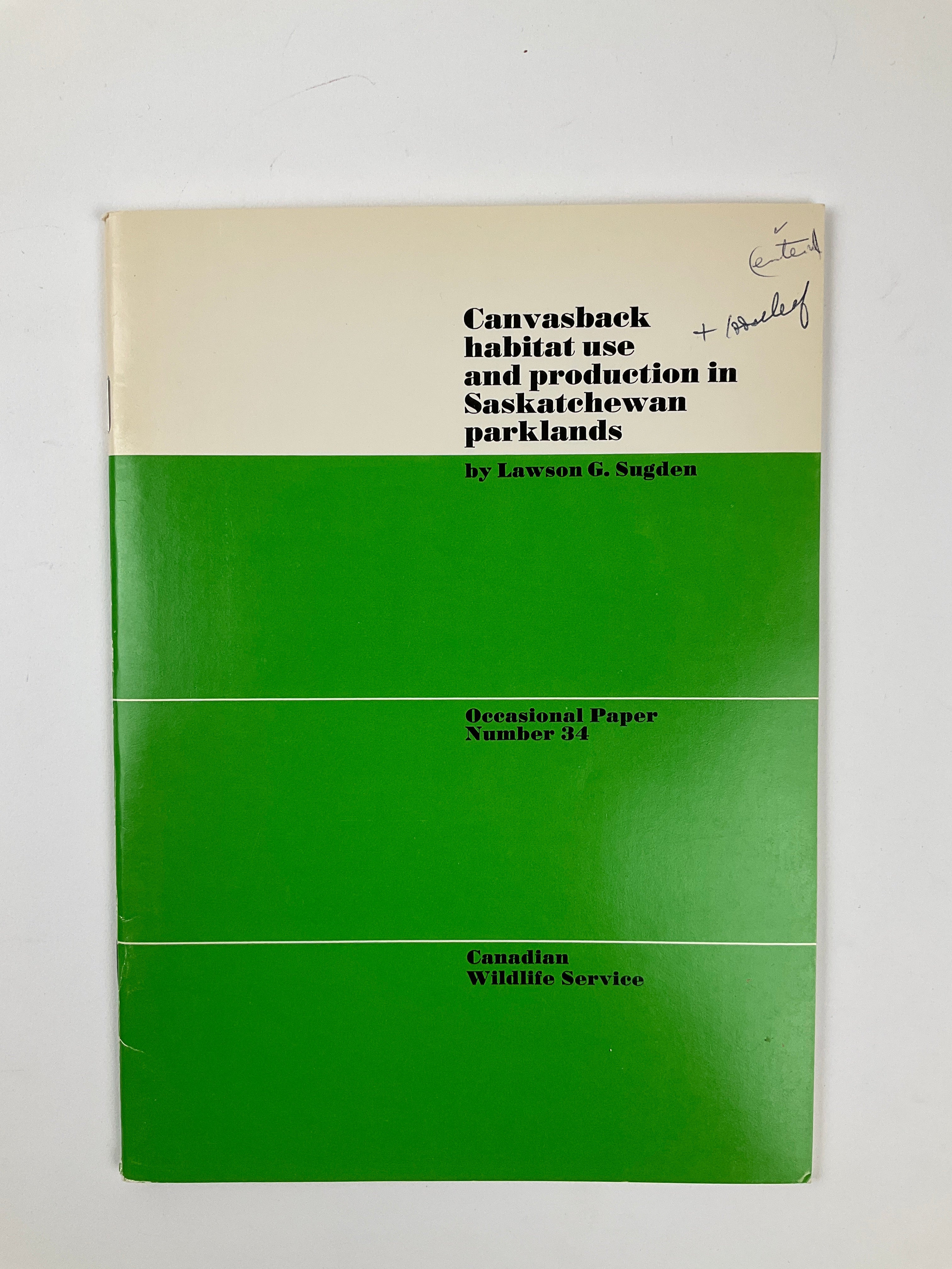 Card covers, saddle stitched with staples, 32 pages, 6.5x9 in, [16.5x23 cm]. Canadian Wildlife Service Occasional Paper Number 34