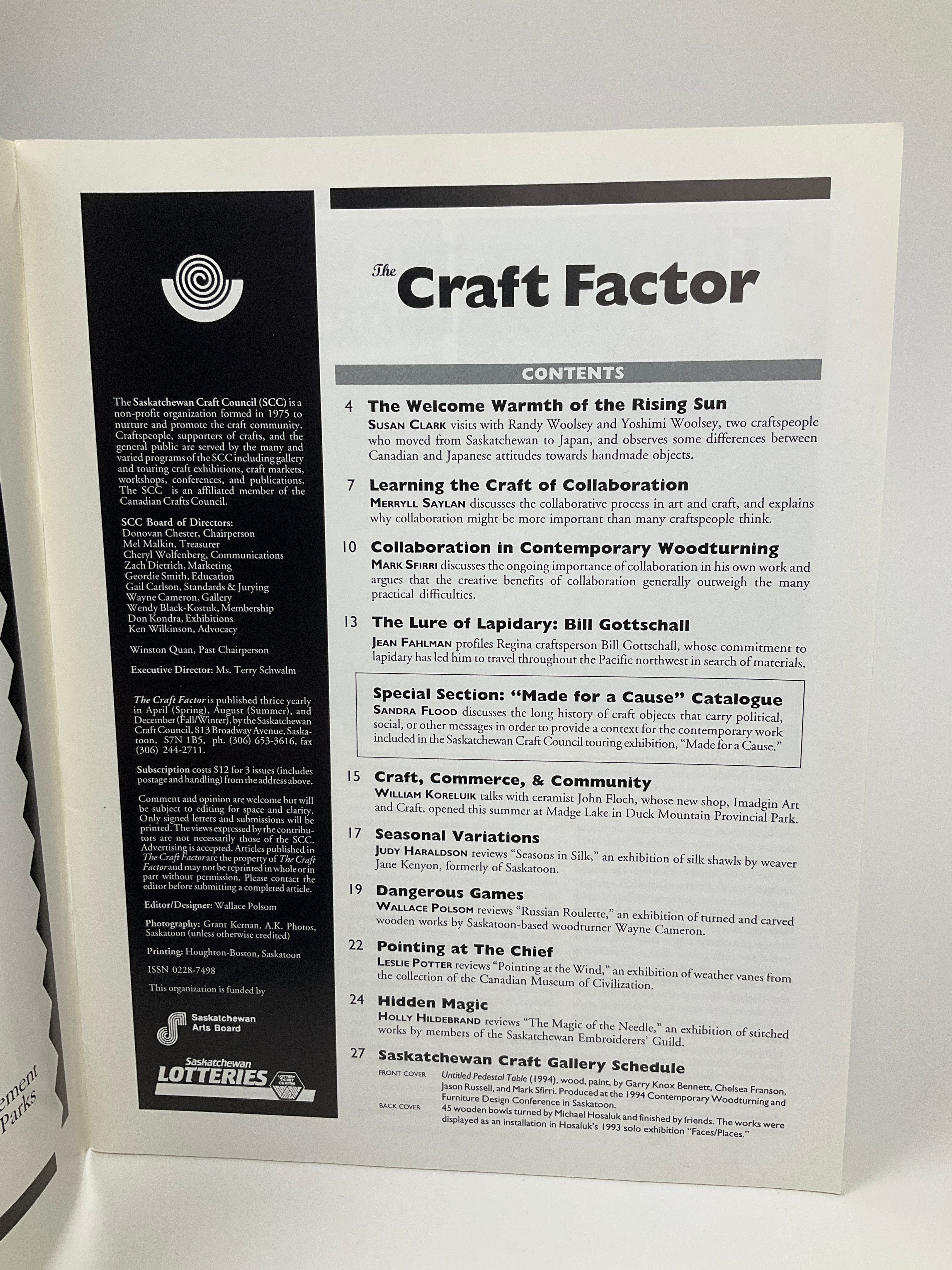 [CF 194 02] The Craft Factor : The Magazine of the Saskatchewan Craft Council, Vol. 19, Iss. 2
