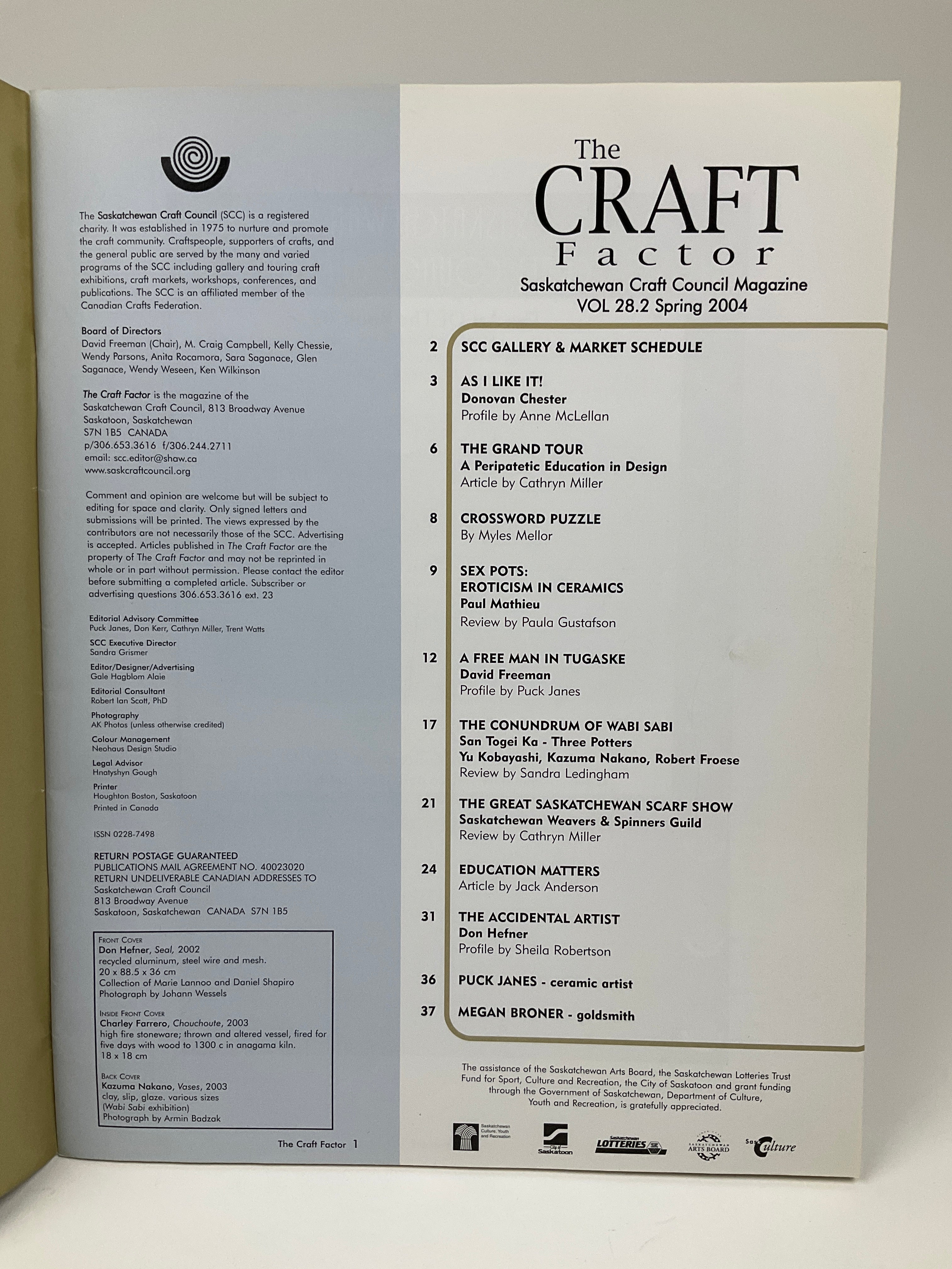 [CF 204 02] The Craft Factor : The Magazine of the Saskatchewan Craft Council, Vol. 28, Iss. 2