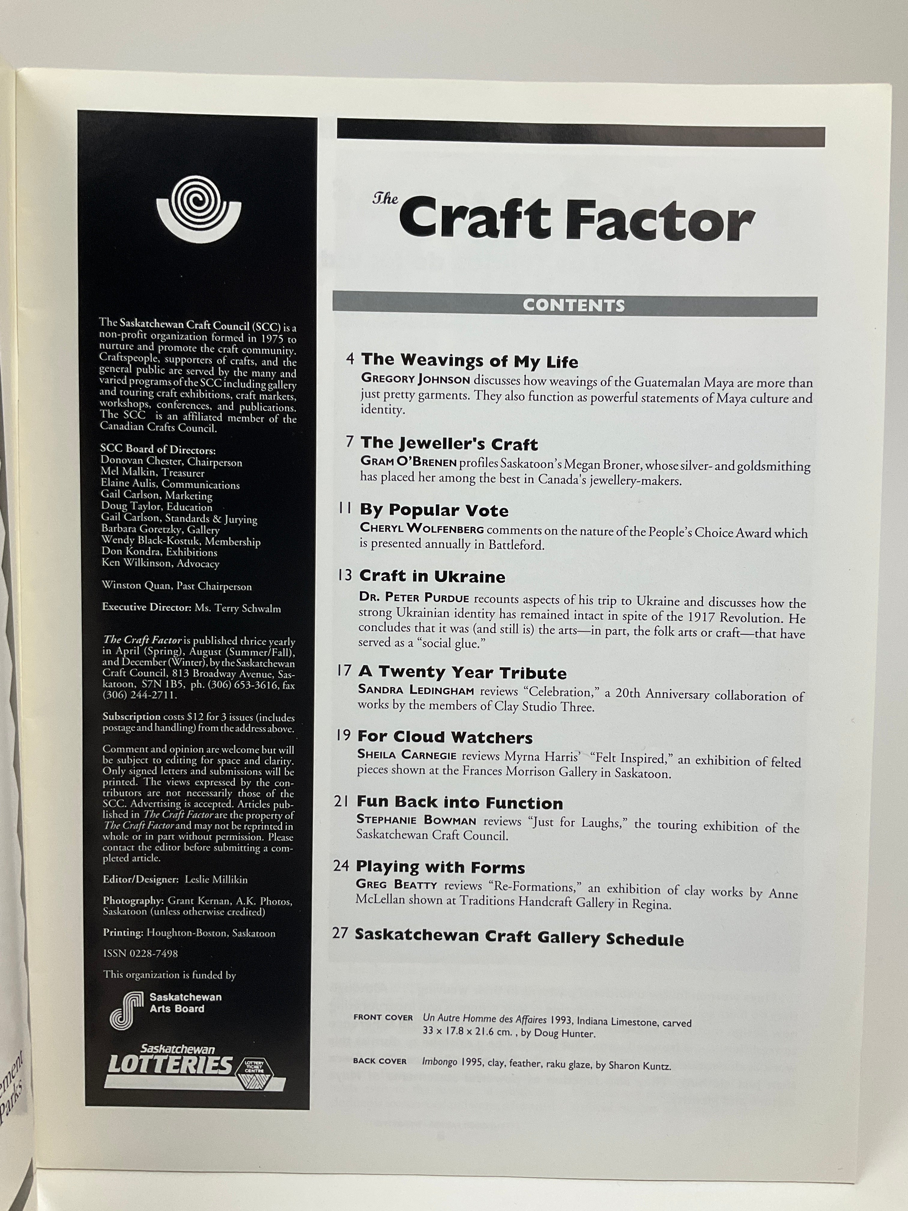 [CF 196 01] The Craft Factor : The Magazine of the Saskatchewan Craft Council, Vol. 21, Iss. 1