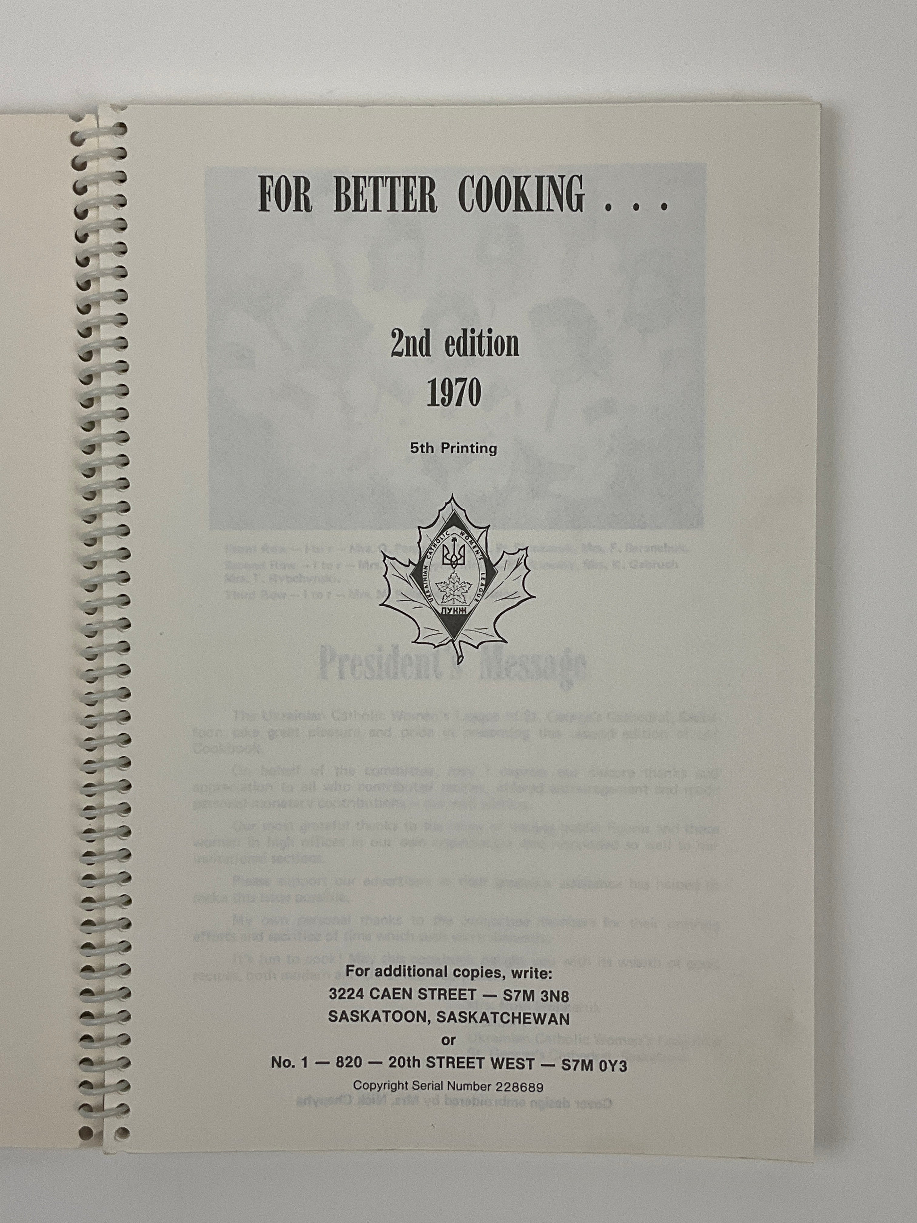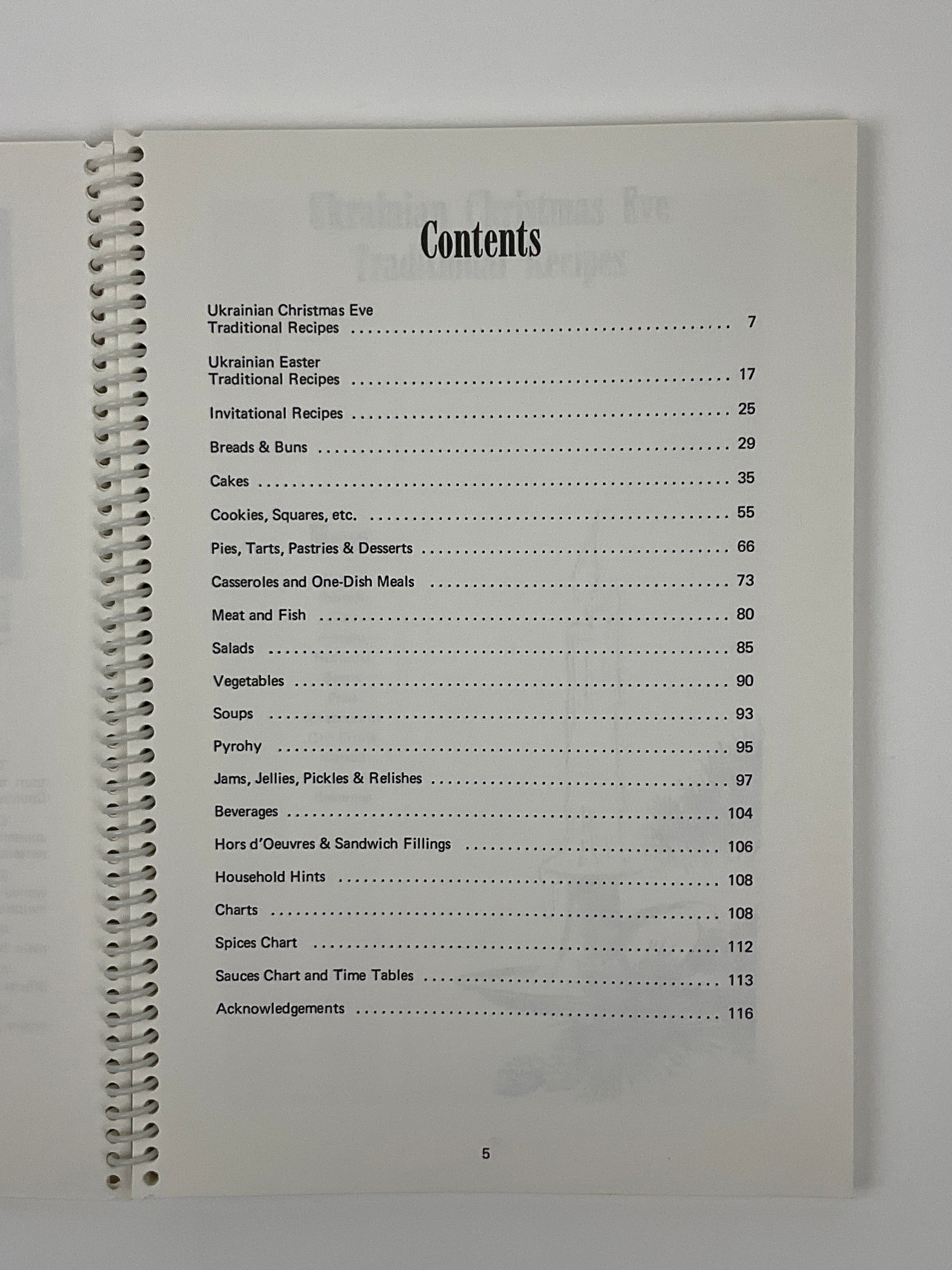 Traditional Ukrainian Pyrohy recipe, Easter and Christmas Eve dinner, along with many contemporary additions. Sections for jams and jellies, pickles, baked goods, and beverages, spice chart, oven temperatures, household hints, and ingredient substitutions are also included.