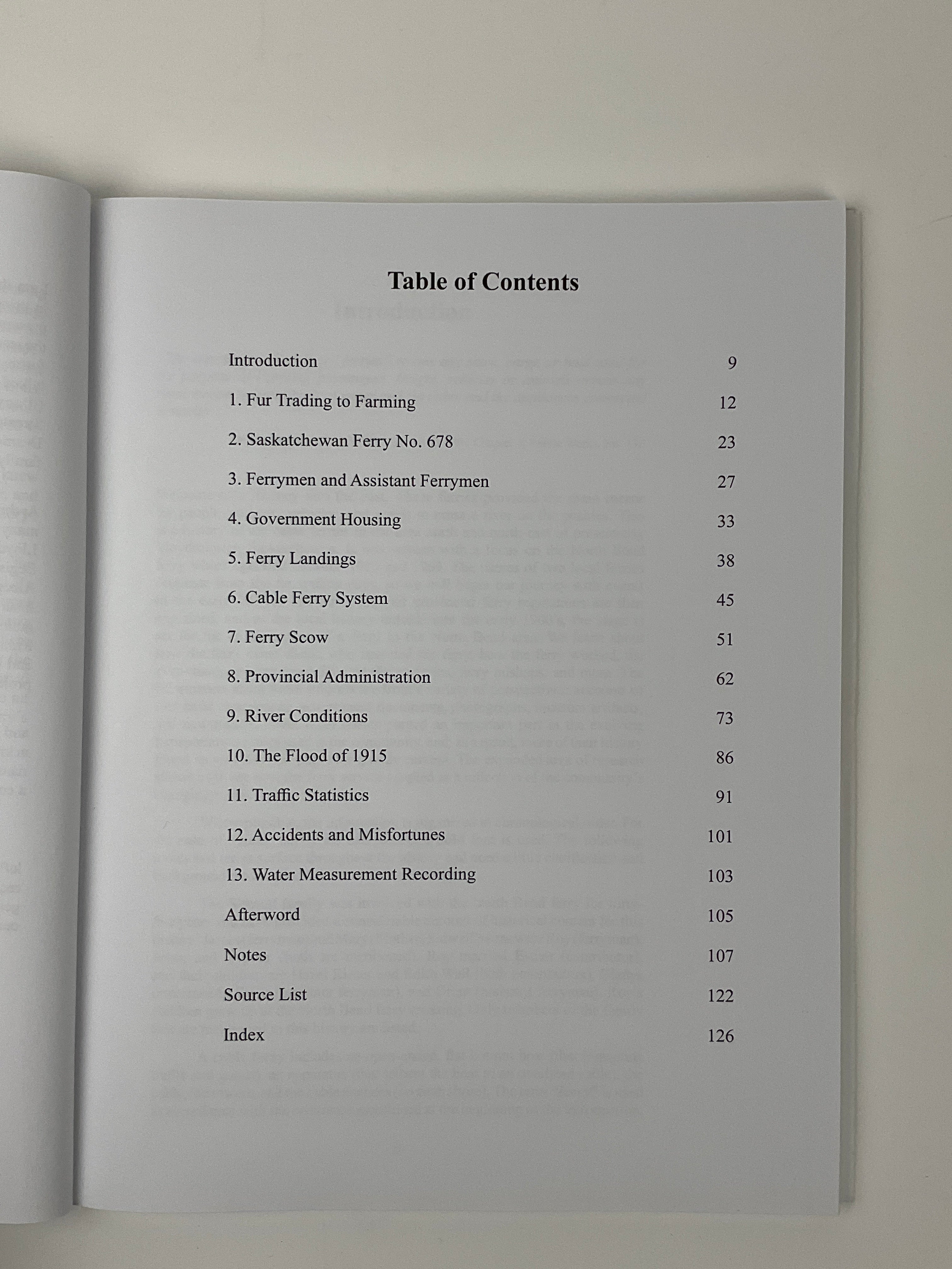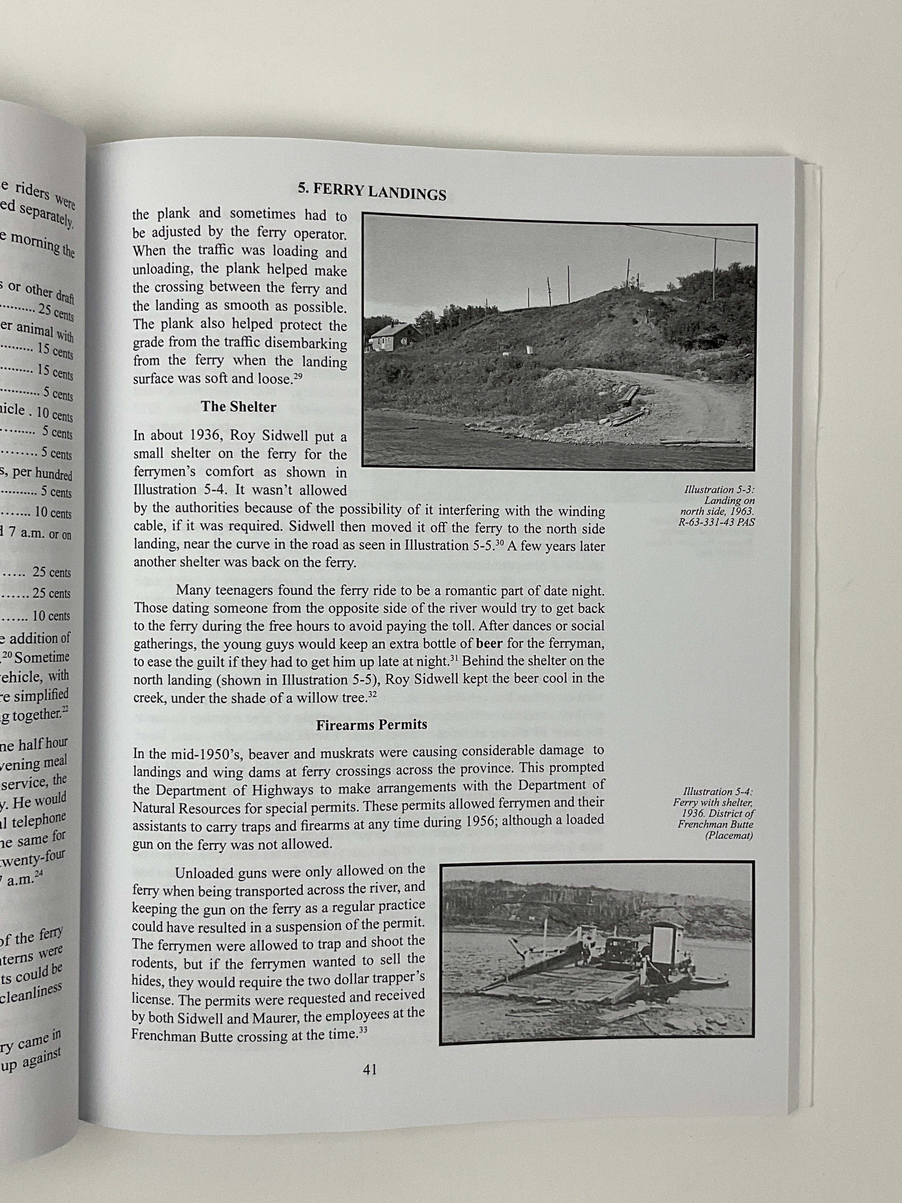 Crossing The River : A Cable Ferry History, primary concern is the North Bend Ferry (1913-1969), crossing the North Saskatchewan River downstream from the Saskatchewan community of Frenchman Butte. Also included is a smattering of information on Lloydminster, Hewitt Landing, Fort Pitt, Tangleflags and Lashburn ferries.