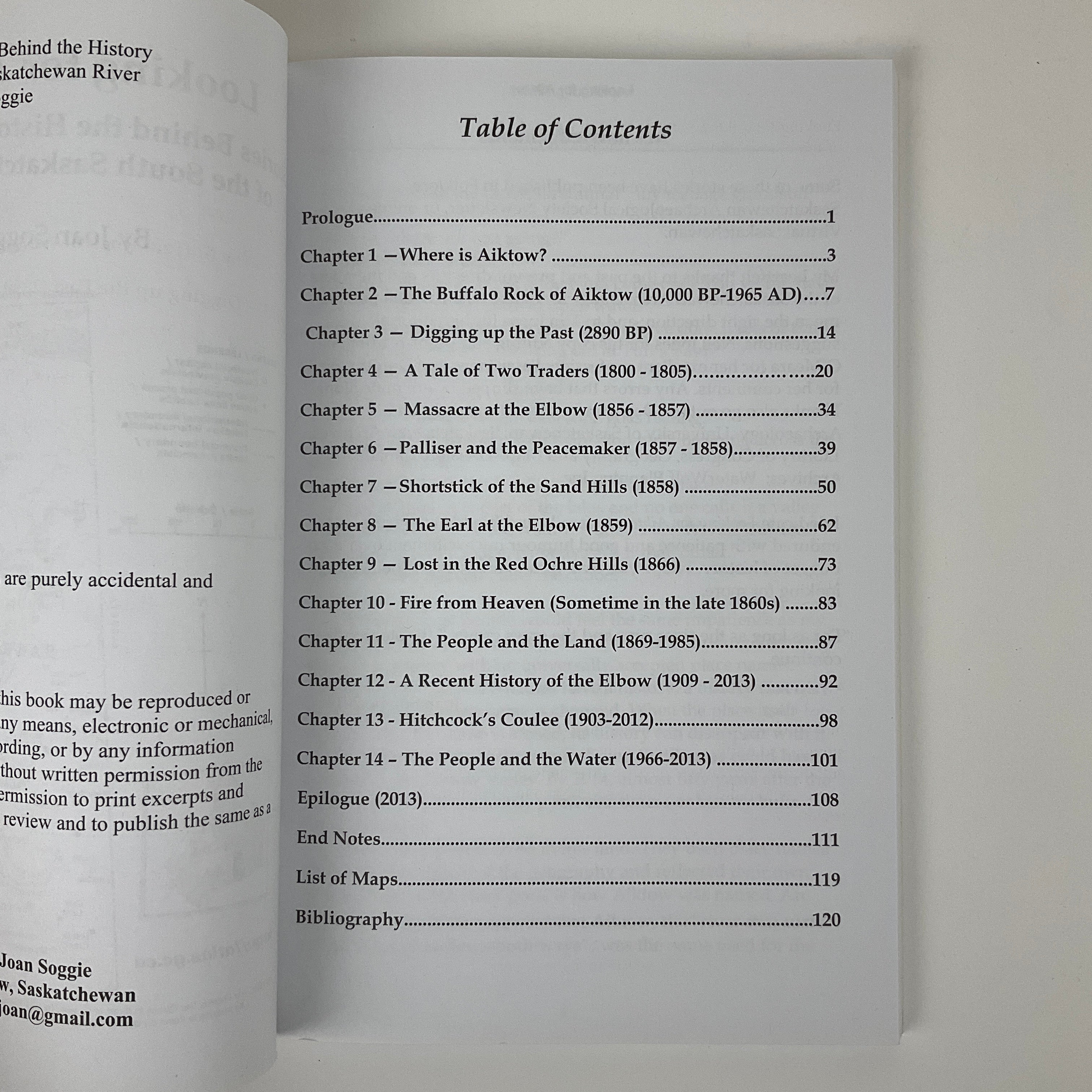 Joan Soggie is a Saskatchewan author who has written two historical works concerning her home community of Elbow (in Cree, "Aiktow") and one novel set on the prairies. In “Looking for Aiktow,” Soggie traces the comings and goings of people through the Aiktow Valley (now submerged beneath Lake Diefenbaker), particularly in the past 200 years. Each of the volume’s chapters addresses a particular time period, figure, or event, crafting a broad historical picture with self-contained vignettes. From clashes between Cree and Blackfoot groups in the 1850s to Elbow’s evolution from a farming community to a tourist destination in the late 1900s, Soggie chronicles the changes and challenges faced by Indigenous and immigrant peoples in the area over time. Includes endnotes and bibliography.