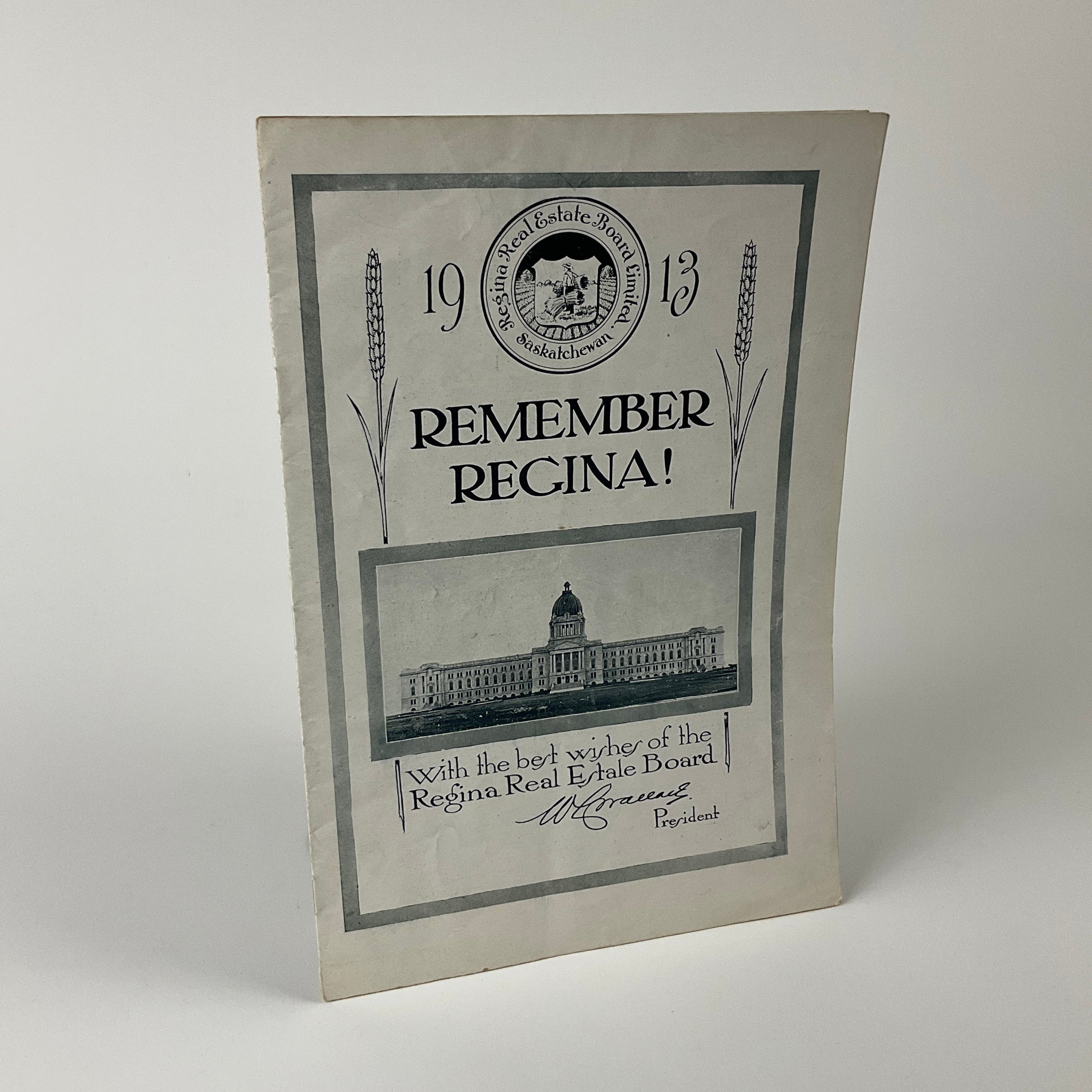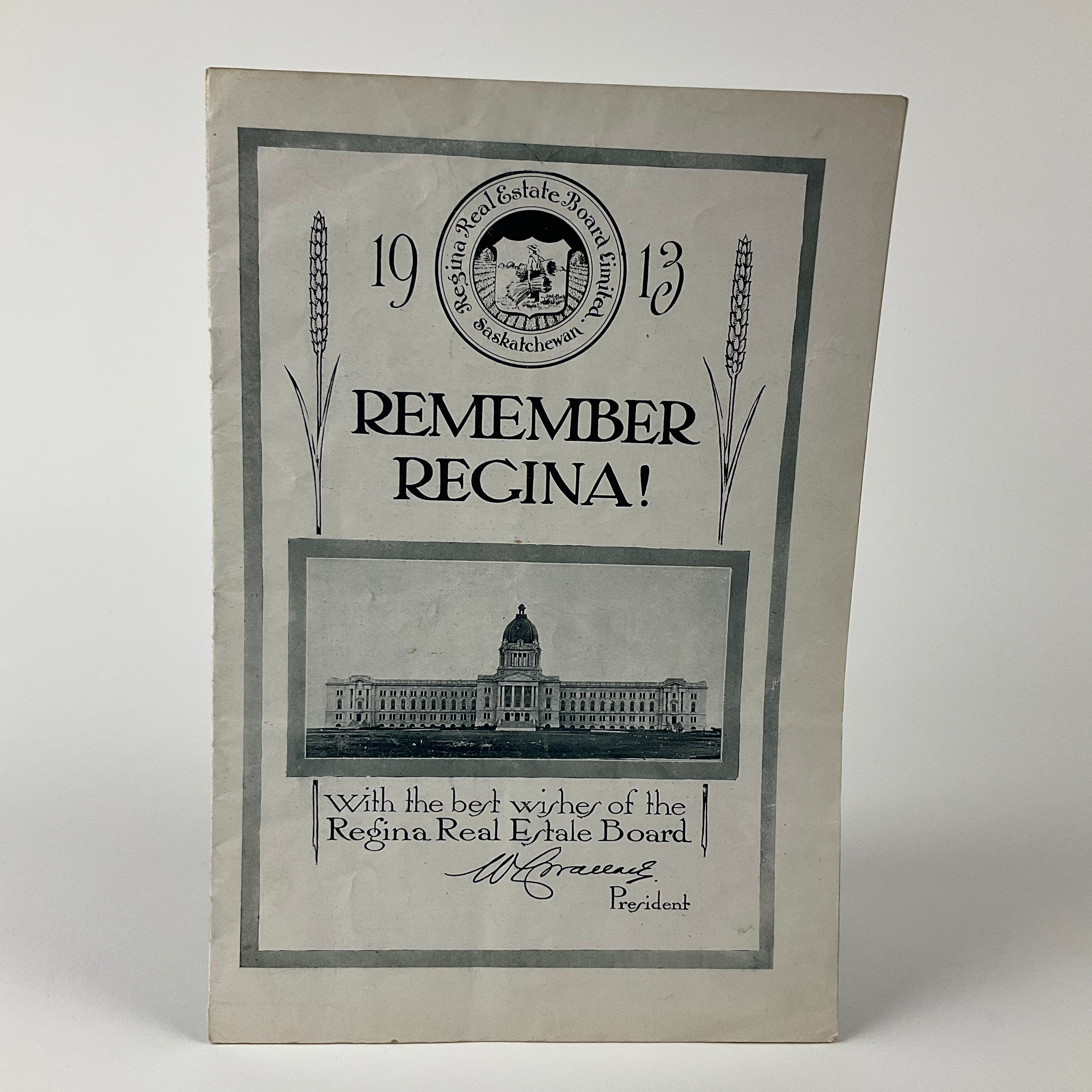 “Remember Regina !” a booklet distributed by the Regina Real Estate Board to attendees of the National Convention of Real Estate Agents held in Regina in 1913. With a clear promotional tone, the booklet offers a glowing account of Regina’s growth and development as a modern provincial capital. Not in Peel. A WorldCat search brings - no results.