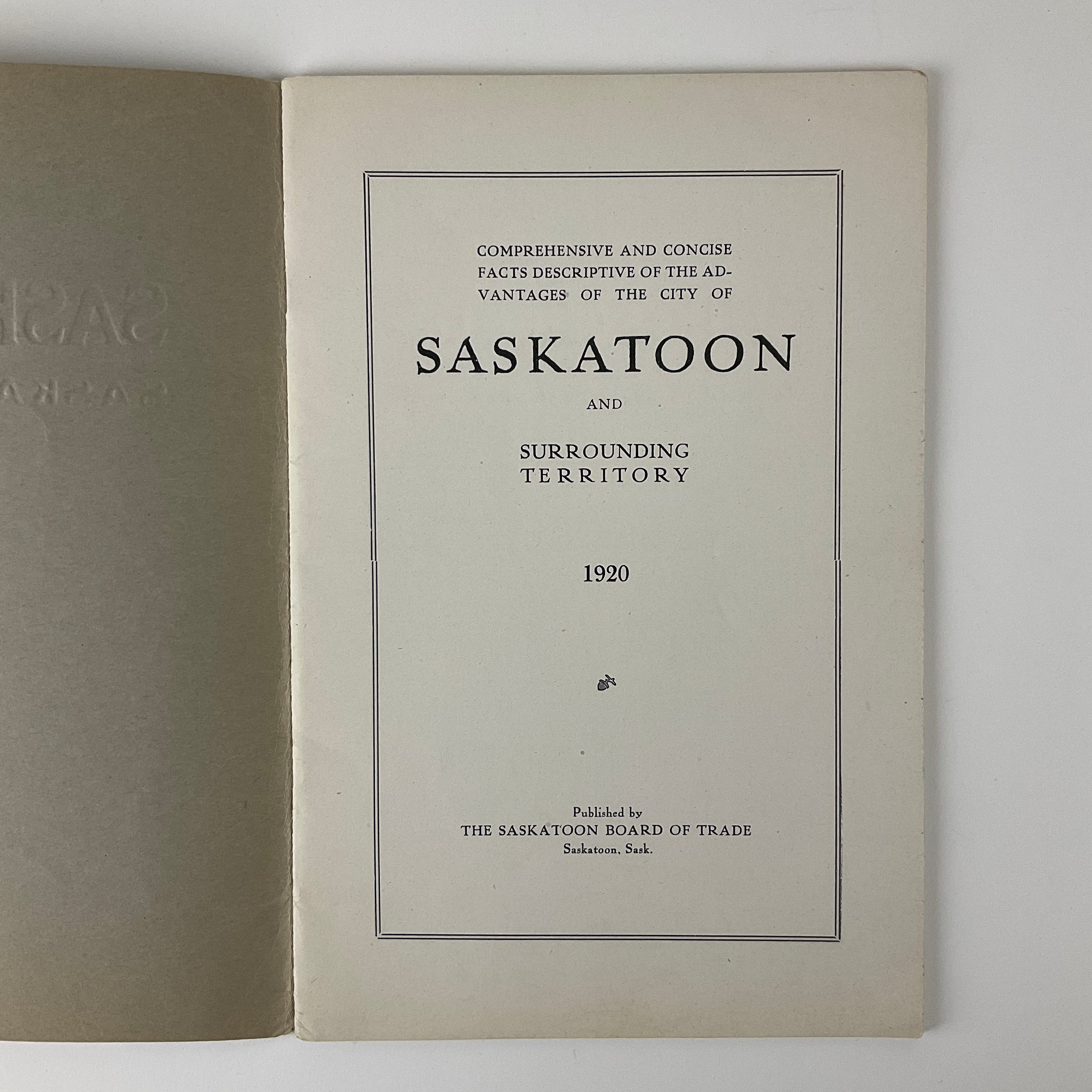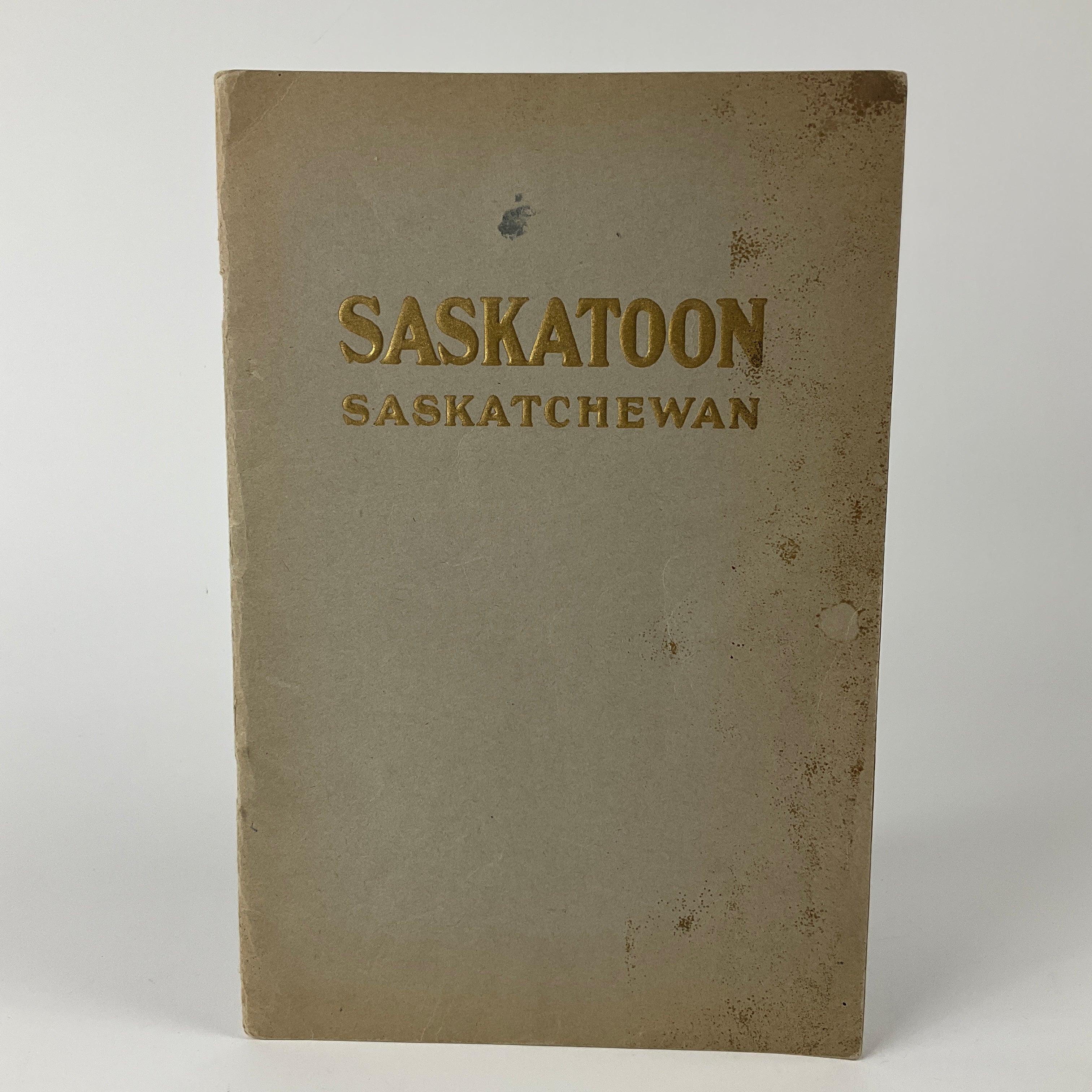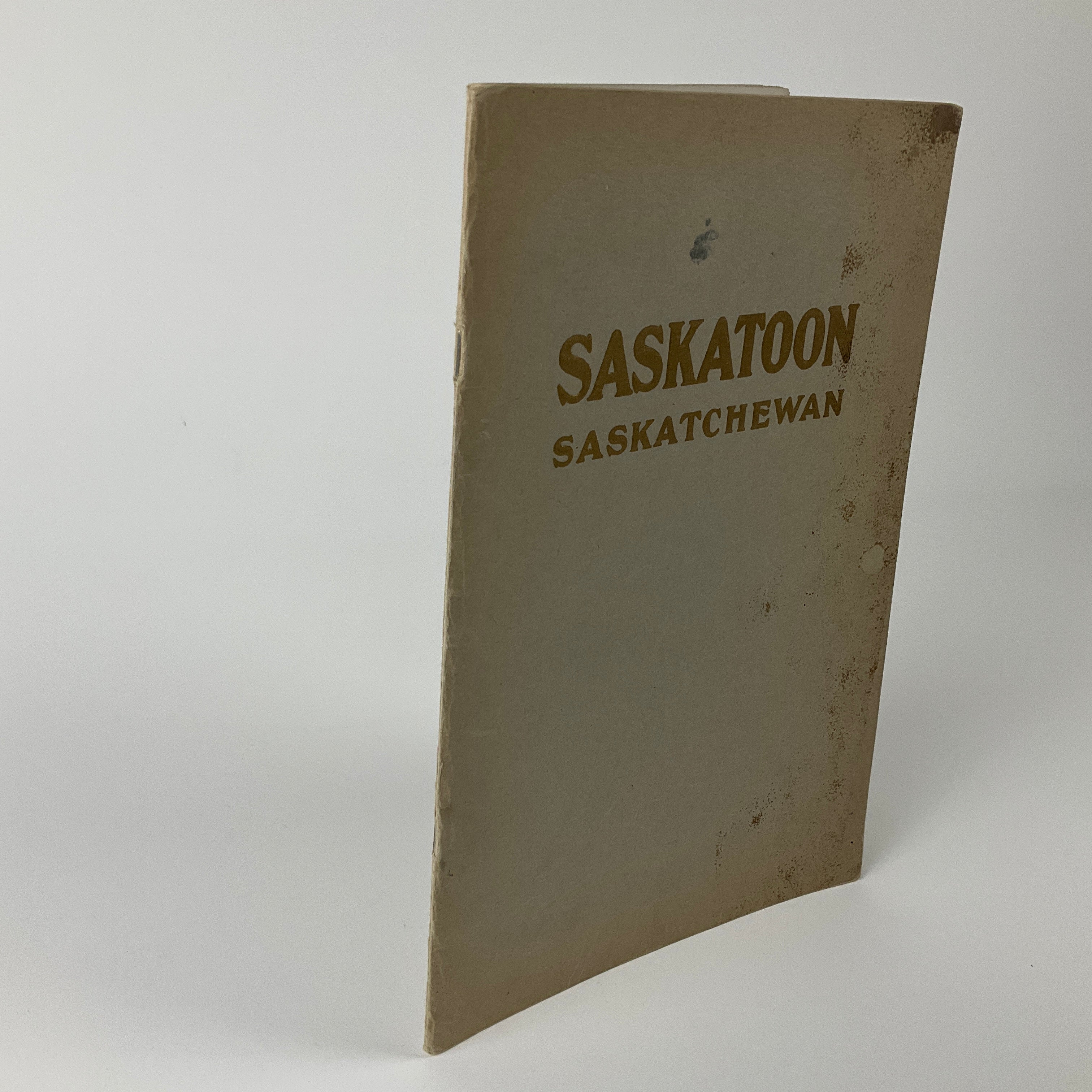 In this booklet, Saskatoon’s Board of Trade promotes Saskatoon, Saskatchewan as a vibrant and lucrative home for businesses and families. The authors describe Saskatoon as the province’s commercial, agricultural, educational, and transportation centre, and claim that this centrality poises the city for further economic and civic growth. Proud overviews of schools, churches, and new construction at the University of Saskatchewan accompany glowing statistics that emphasize Saskatoon’s progress as a modern city. Photographs of prairie vistas, bustling streets, and civic buildings appear throughout. Together, the booklet’s text and images form an optimistic portrait of Saskatoon at the start of a new decade.
