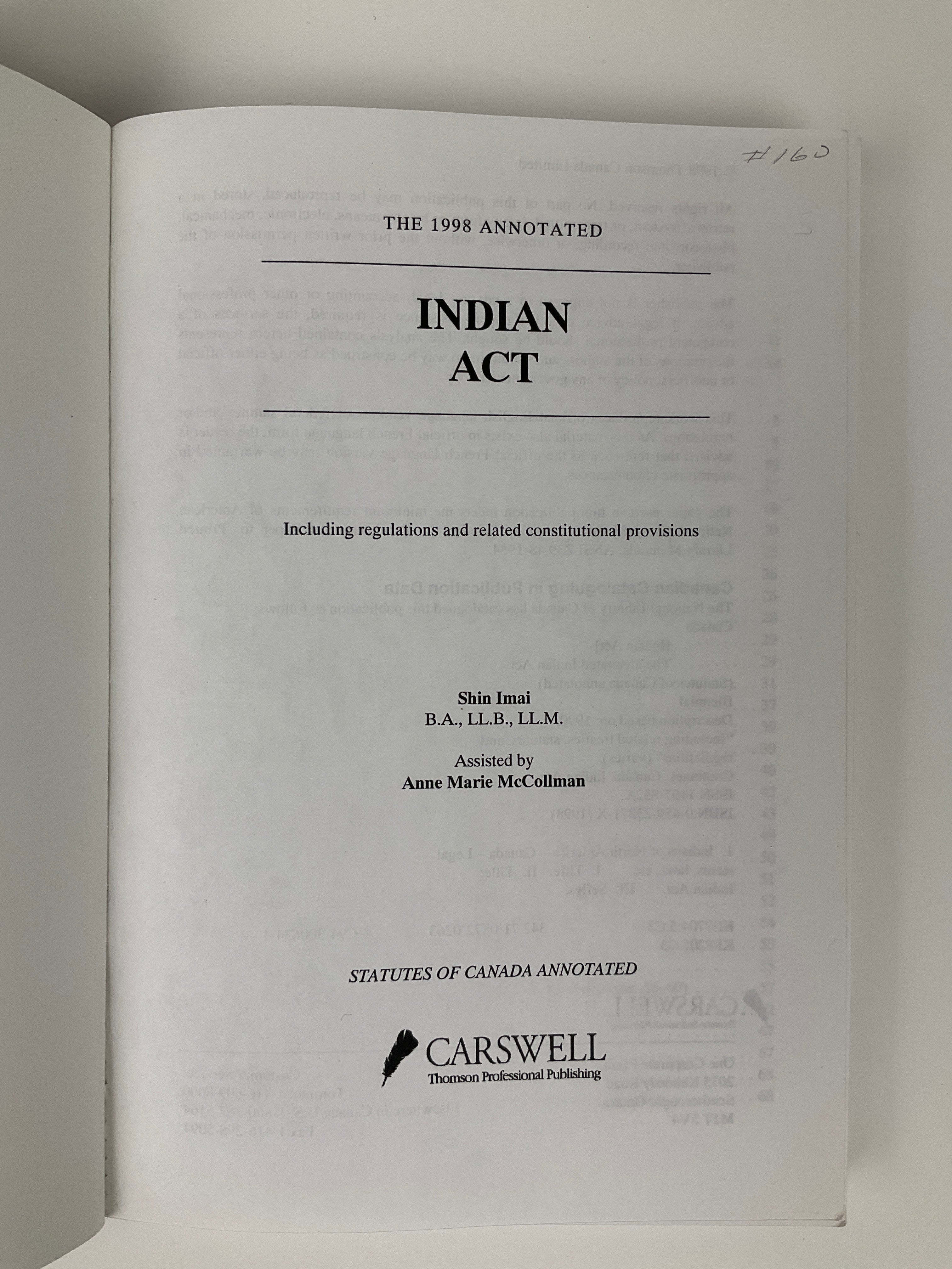 The 1998 Annotated Indian Act : Including Regulations And Related Constitutional Provisions