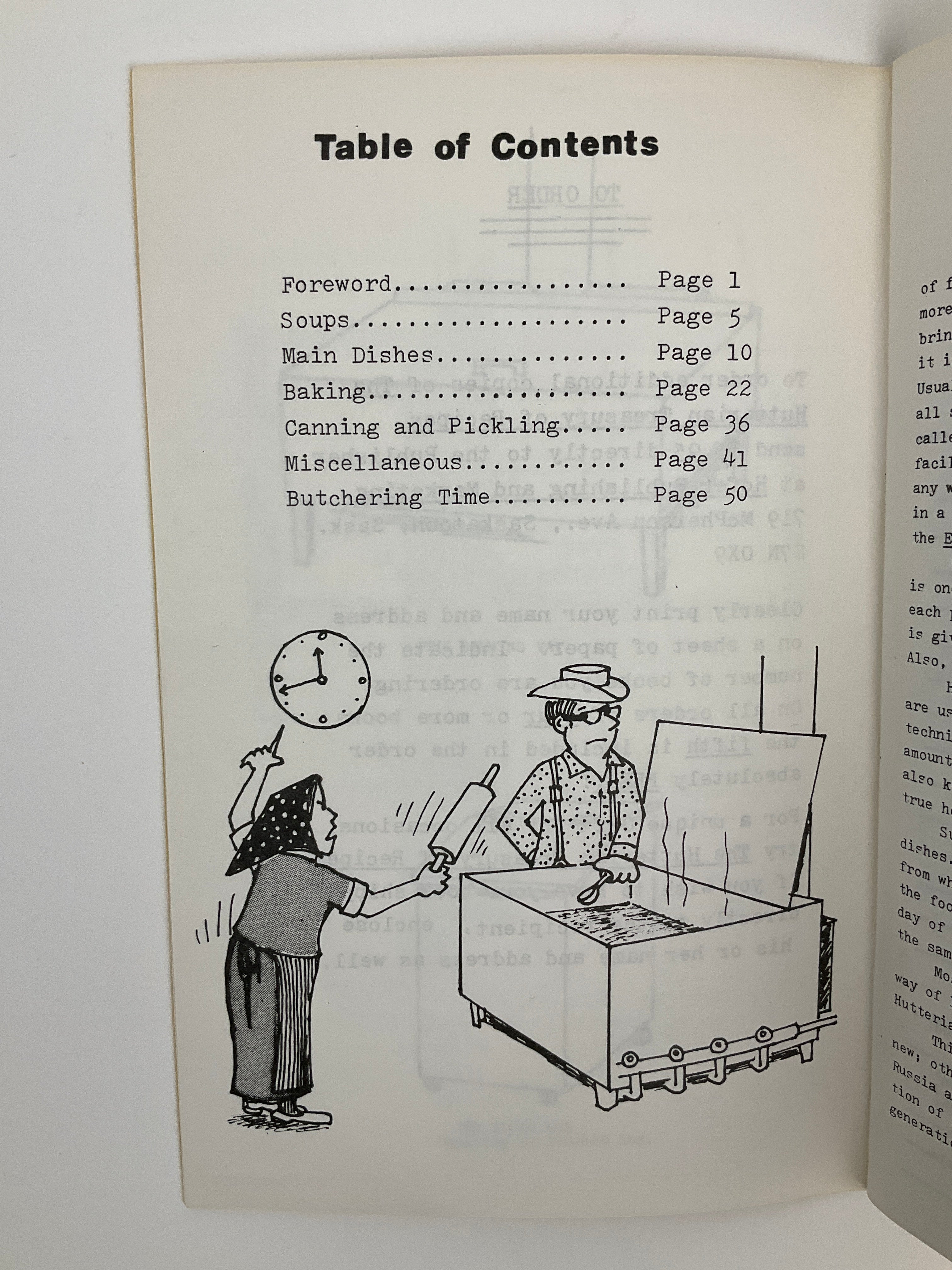 "This book consists mostly of Hutterite recipes only, some fairly new; others dating back several centuries when Hutterites lived in Russia and German." Sam Hofter, Foreword