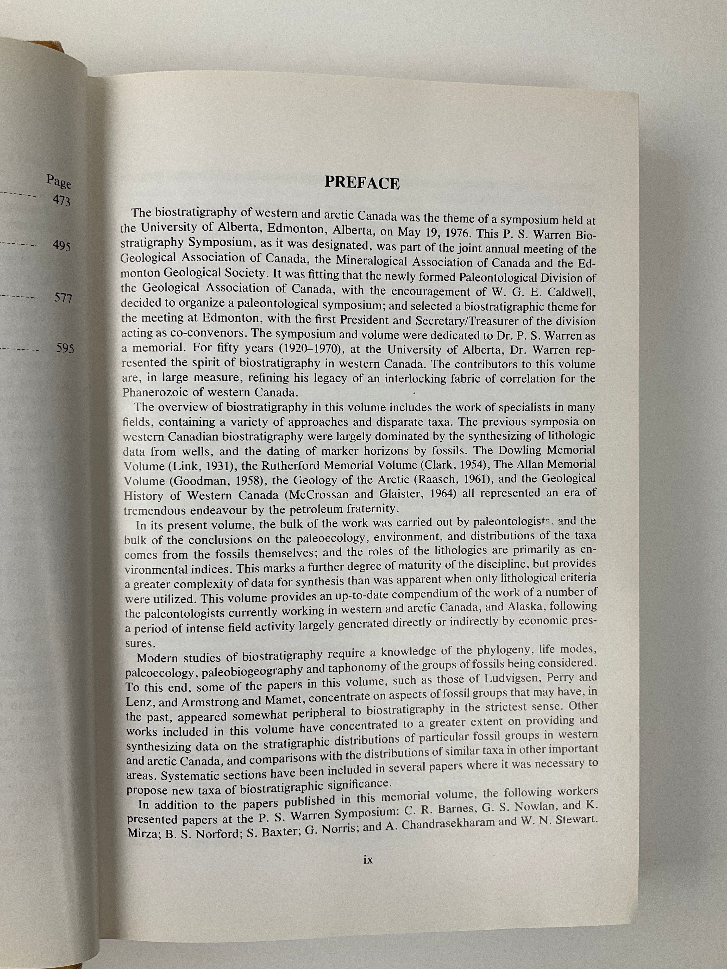 "The proceedings of the P.S. Warren Biostratigraphy Symposium organized by the Geological Association of Canada and Edmonton Geological Society, held at the University of Alberta, Edmonton, Alberta, May 19, 1976".