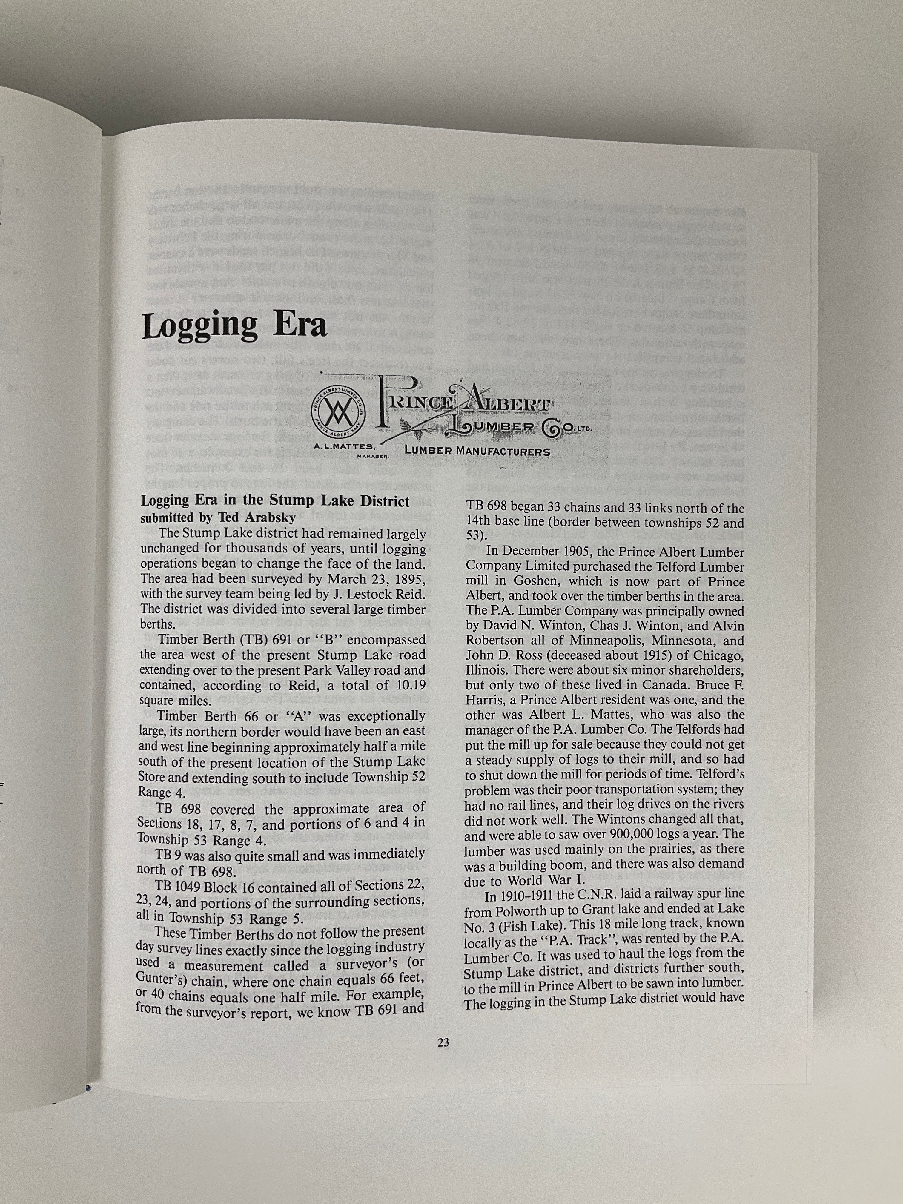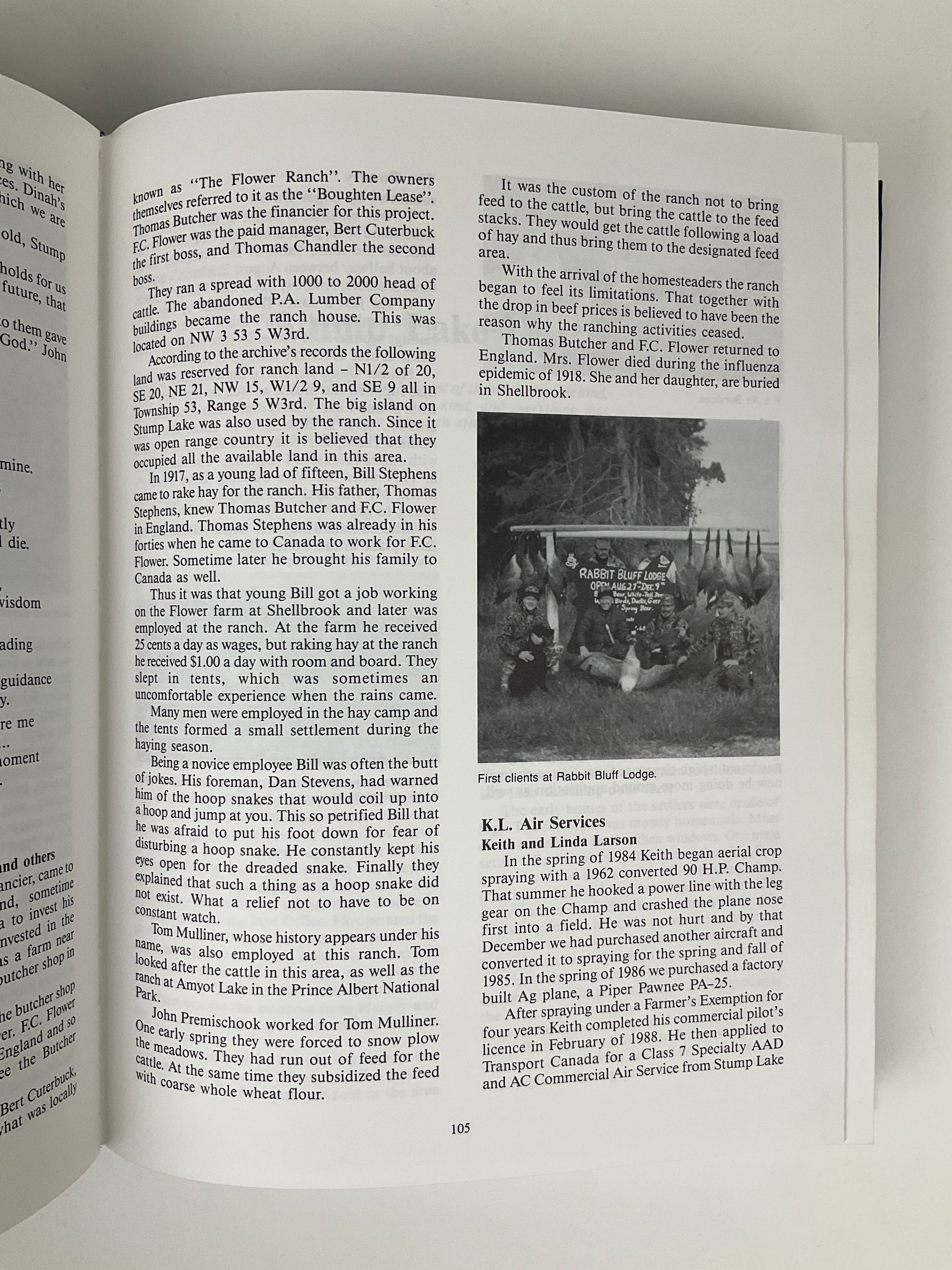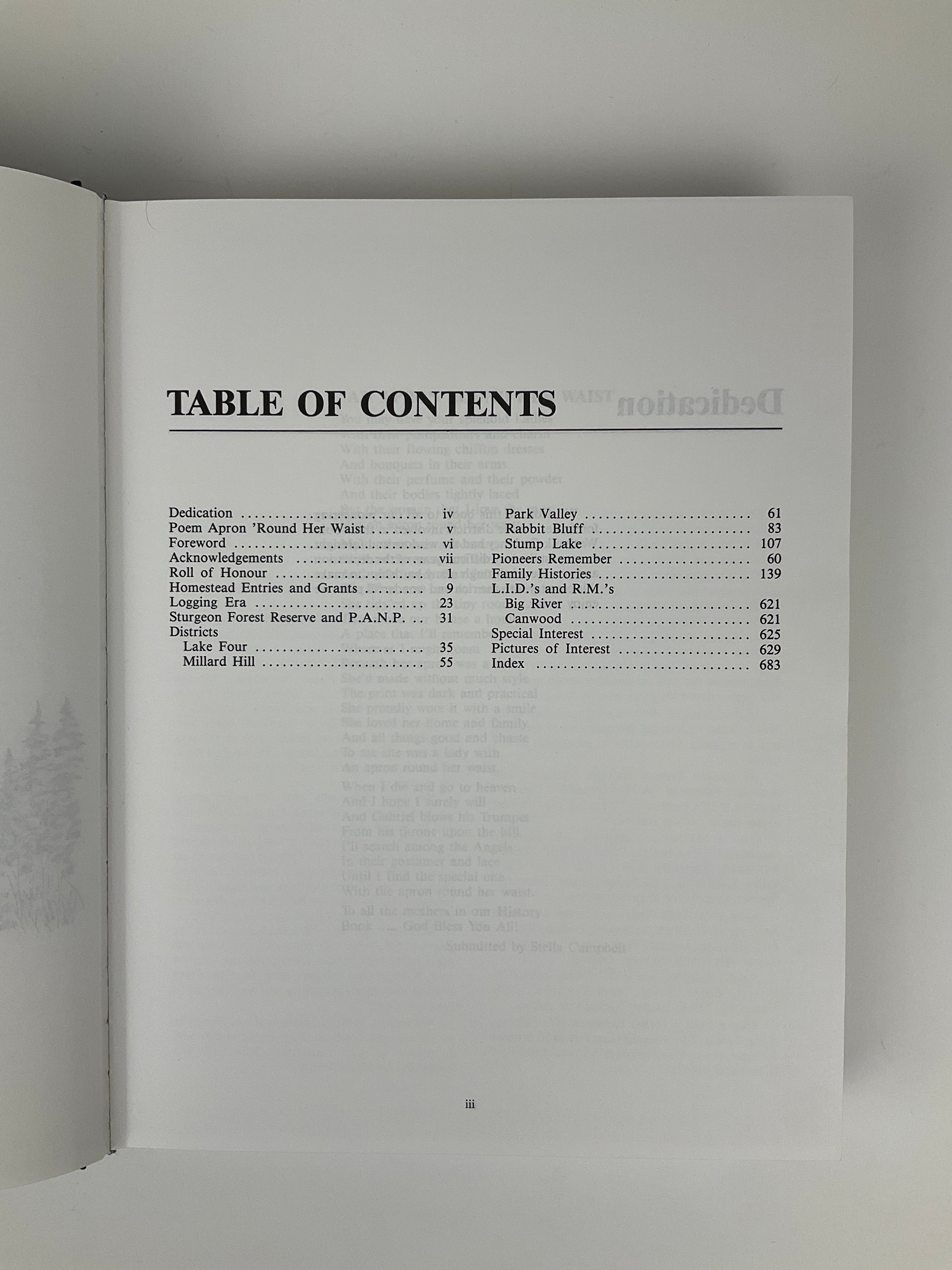 Wilderness to Neighbourhoods offers brief profiles of Lake Four, Millard Hill, Park Valley, Rabbit Bluff, and Stump Lake—followed by family-contributed histories. The book also includes an index and an Honour Roll.